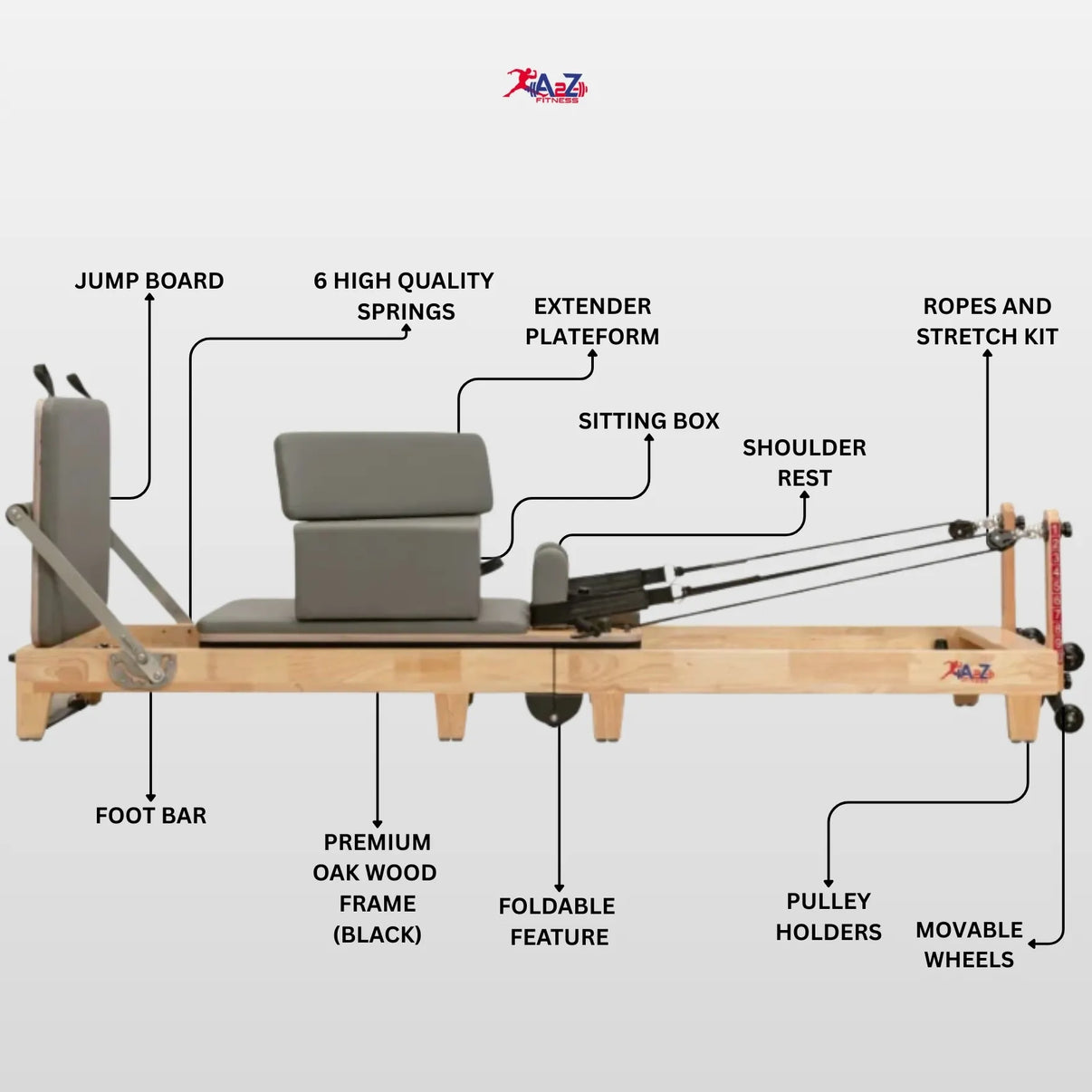 Included Accessories: Pilates box, jump board & foot strap and Foot Extension